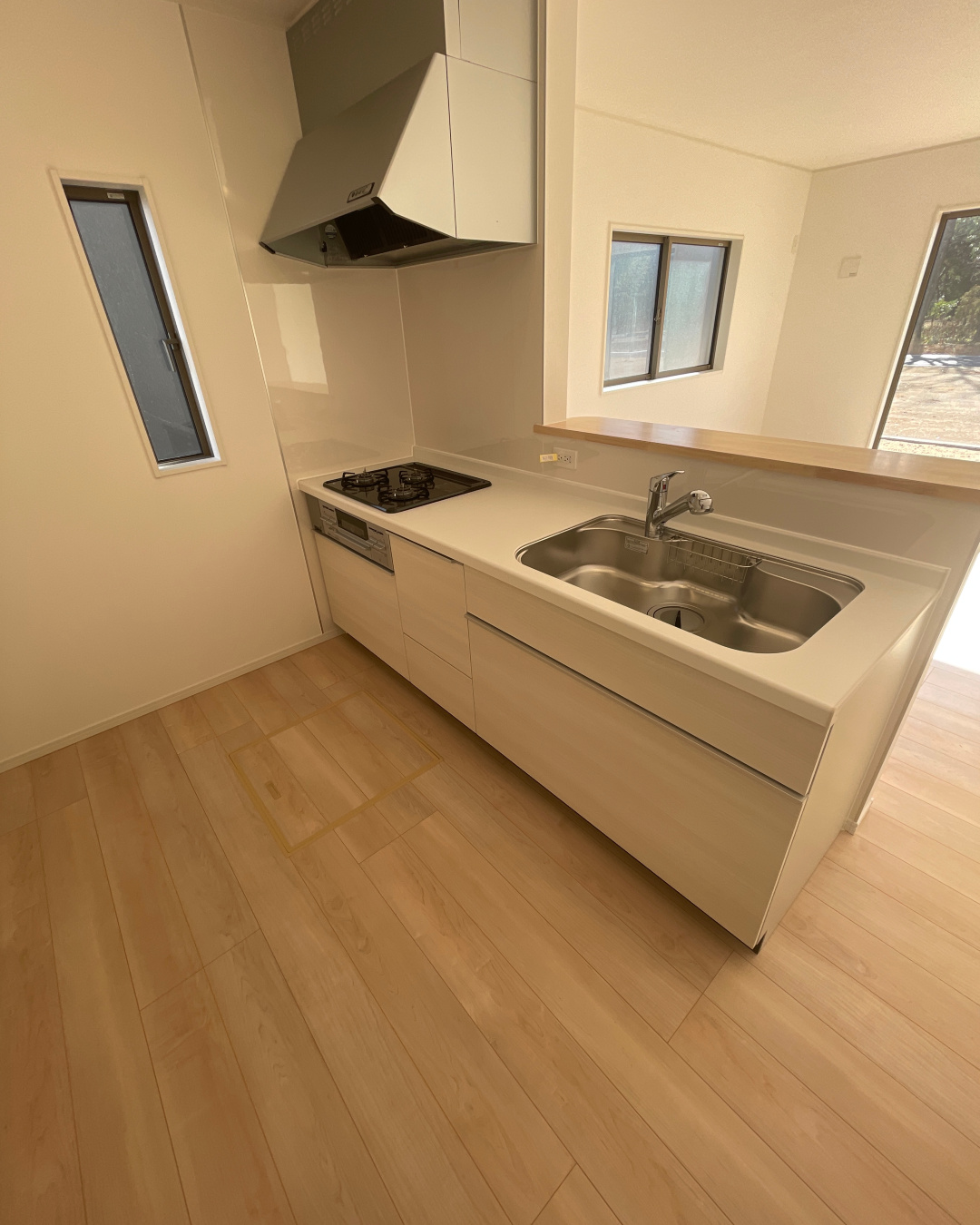 羽若町に4LDK新築のお家です!快適で充実した設備、豊富な収納スペース、木の温もりを感じるフローリング、来客時に生活感が見えにくい「L型リビング」です!